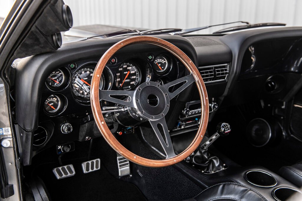The result is not a retro interior, but a reinterpretation of the classic Mustang cockpit executed to bespoke standards.
