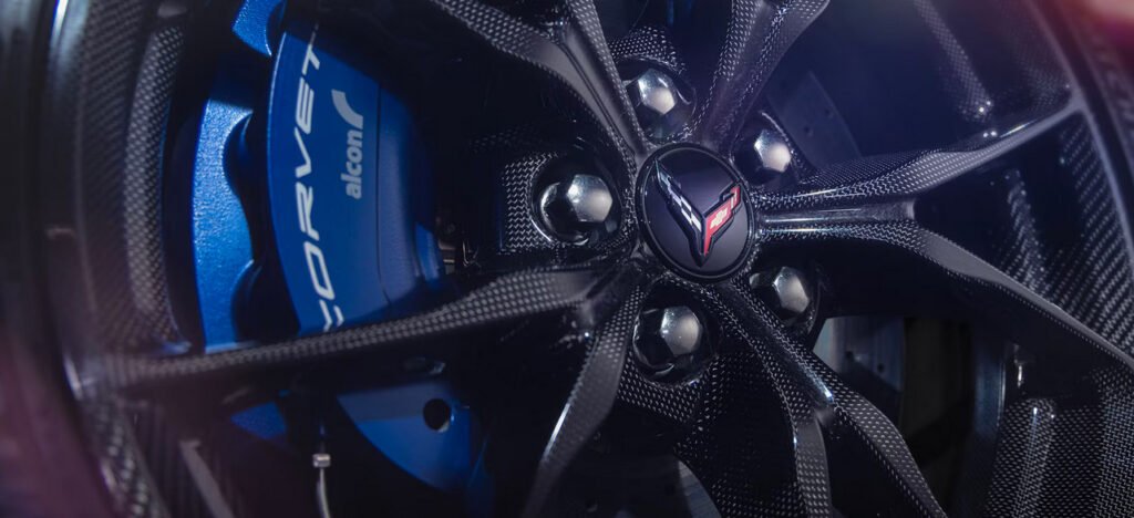 For the ZR1X, Chevrolet developed its most advanced braking system ever fitted to a Corvette. Massive carbon-ceramic discs measuring over 16 inches in diameter are paired with high-performance multi-piston calipers engineered for repeated high-speed deceleration.