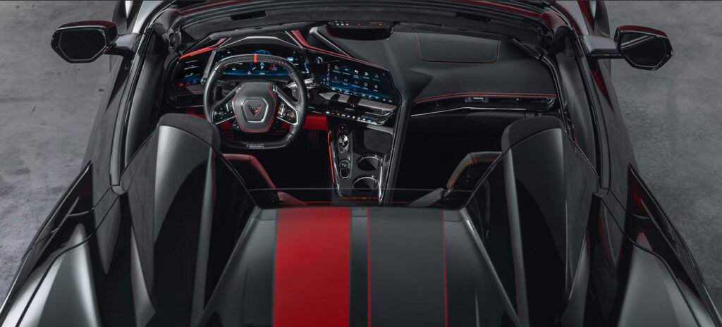 Behind the driver sits the LT7 twin-turbocharged 5.5-litre V8, an evolution of the high-revving engine family developed for the latest generation of Corvette performance models. This engine drives the rear wheels and delivers an astonishing level of output, providing the raw mechanical force expected from America’s most iconic sports car.