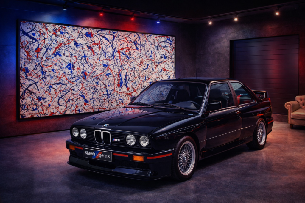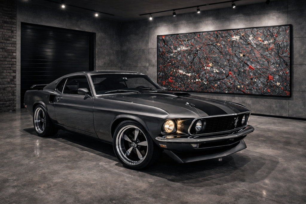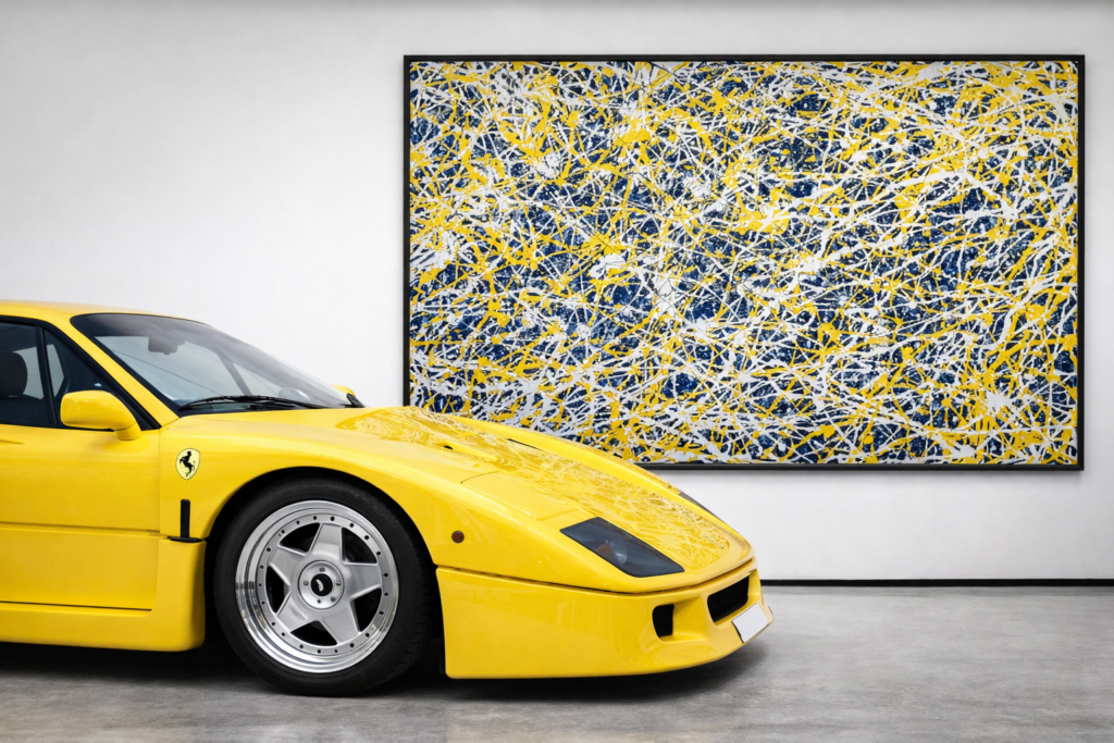 Large-scale canvases are particularly suited to luxury garage spaces, where expansive walls demand artworks capable of matching the visual presence of the vehicles themselves.