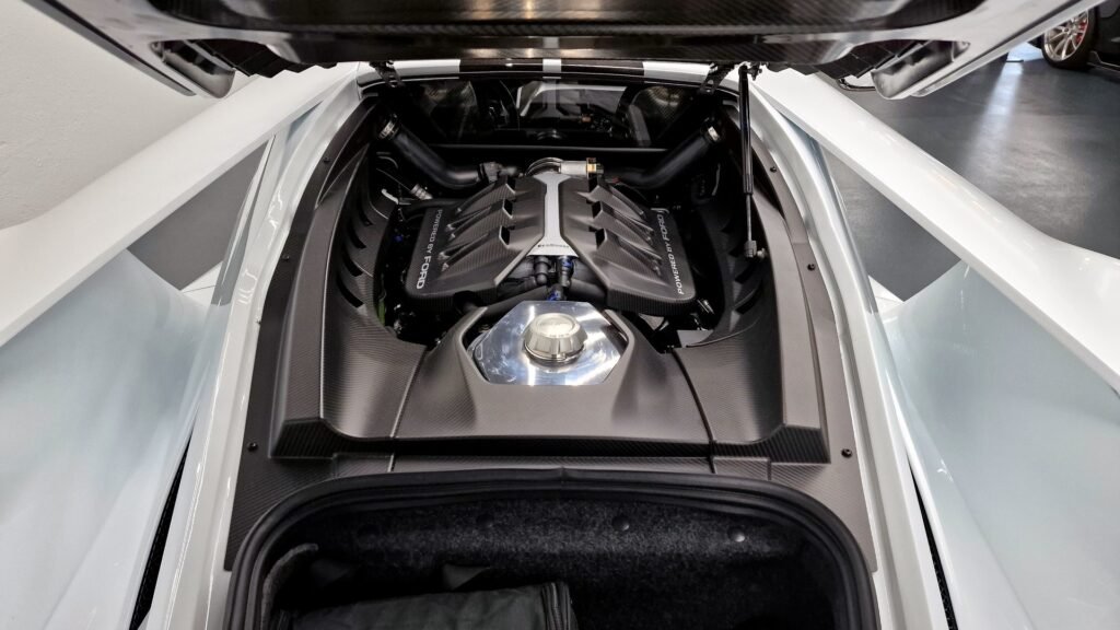 Visually, the Carbon Series is immediately recognizable. Exposed carbon fiber surfaces, subtle racing-inspired striping and a purposeful minimalist approach define the exterior. The result is a car that feels closer to a competition machine than to a traditional road-going supercar.