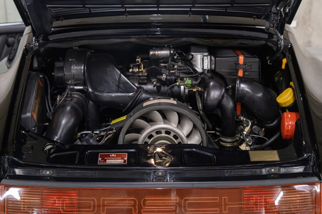 Behind the rear cover sits the well-known 3.6-litre naturally aspirated flat-six engine, producing 250 horsepower. This engine belongs to one of the last generations of air-cooled 911 powerplants before Porsche transitioned to newer architectures.